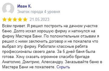 Да, мы даем гарантию сроком на 3 года. Гарантийные обязательства вступают в силу с момента полной оплаты договорной стоимости, при условии соблюдения «Заказчиком» правил эксплуатации строения. Правила эксплуатации подробно прописаны в договоре.