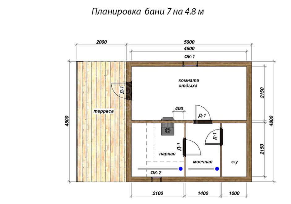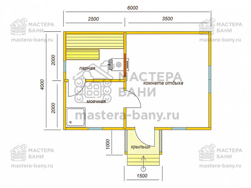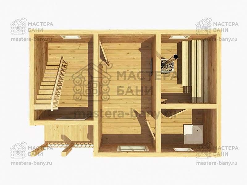 Помещений: 5 (парная / моечная / прихожая / комната отдыха / санузел)
