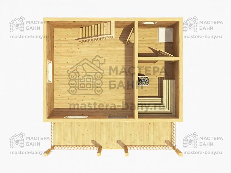 Помещений: 6 (парная / моечная / комната отдыха / санузел / тамбур / мансарда)